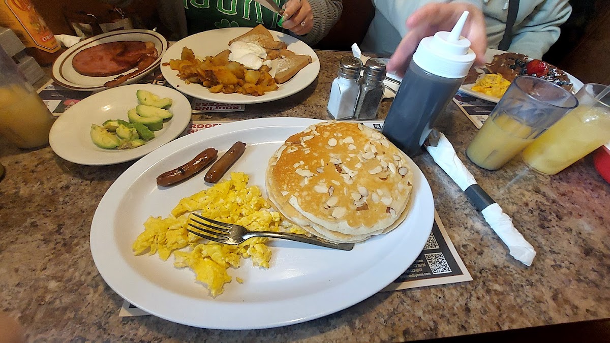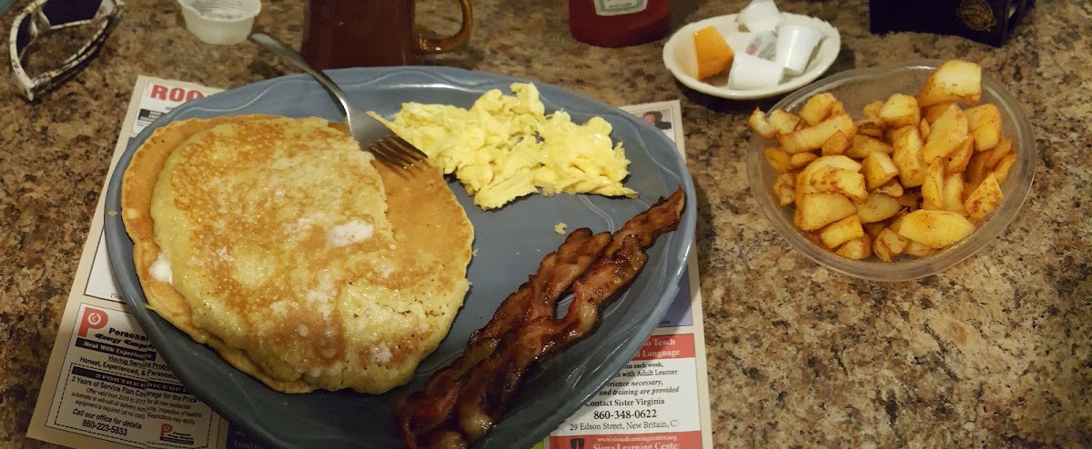We went here today for breakfast.. the food was very good.. I had the crazy pancake breakfast (two French toast, two pancakes, two eggs, two sausage links and two slices of bacon and it came with potatoes) the price was right.. our waitress was very cheerful and friendly. It still looks like the paradise pizza from back in the day, but that’s what we like about it. We will be back again for sure..